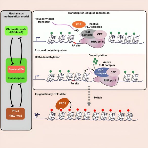 La recherche menée par les groupes Caroline Dean et Martin Howard du John Innes Center, en collaboration avec le Laboratoire de biologie moléculaire (LMB) du MRC à Cambridge, montre comment la rétroaction entre le traitement de l'ARN, la structure de la chromatine et la transcription génère deux modes de régulation auto-renforcés. —un « engrenage » transcriptionnel haut ou bas- qui peut passer de l'un à l'autre.