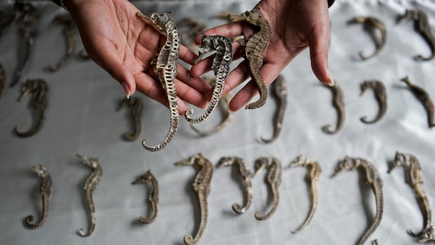 Bien qu’aucune des crises publiquement signalées de l’étude ne se trouvait au Canada, 19 «dossiers d’application» liés aux hippocampes ont été ouverts depuis 2020, selon un communiqué de l’environnement et du changement climatique Canada. Cela comprend 15 dans la région du Pacifique, “impliquant principalement des hippocampes séchées ou des produits à base d’hippocampes (par exemple, des médicaments ou des suppléments traditionnels).”