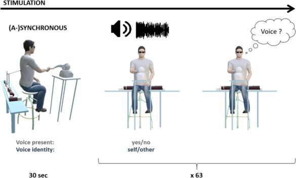 Dans cette nouvelle étude, 48 volontaires se sont assis sur une chaise et ont appuyé sur un bouton, comme lors des premières expériences. Une fois de plus, cela a entraîné un petit coup dans le dos, mais cette fois, l’équipe de recherche a fait varier le délai entre la pression sur le bouton et le coup. Une fois de plus, les bénévoles ont commencé à sentir une présence derrière eux. Dans cette expérience, les chercheurs ont également ajouté des écouteurs qui émettaient une forme douce de bruit blanc. De plus, certains enregistrements diffusaient de manière aléatoire des échantillons de la voix des volontaires ou de la voix de quelqu’un d’autre. Dans toutes les séances, il a été demandé à chaque volontaire s’il entendait une voix provenant des écouteurs.