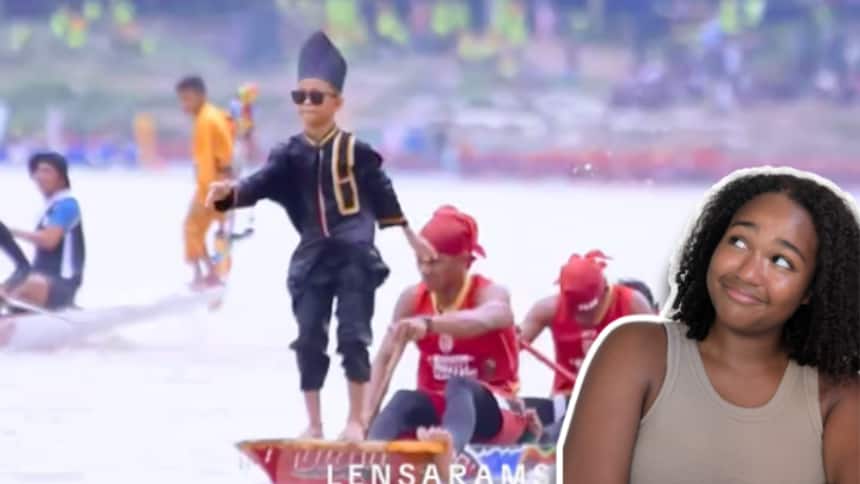 Le rôle de Rayyan dans la course en bateau est de garder l’équipe de rameurs motivée à continuer de pousser. (Crédit vidéo: Lensa.rams / tiktok)