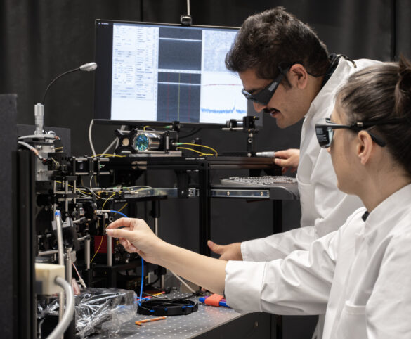 Dr Arsham Hamidi et Dr Ferda Canbaz au laboratoire laser. Crédit : Reinhard Wendler, Université de Bâle