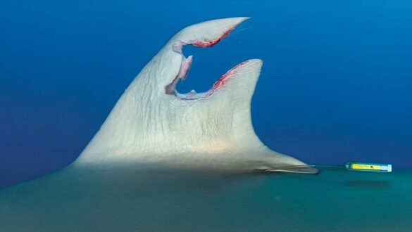 En étudiant les photos prises du requin, elle a noté que la ligne de blessure traçait les contours de ce qui était autrefois le site de marquage satellite. Une personne inconnue avait coupé l'étiquette de la nageoire, laissant un énorme vide. Le morceau d'aileron manquant était si gros que Black s'attendait à ce que le requin meure probablement à cause des difficultés à attraper de la nourriture.