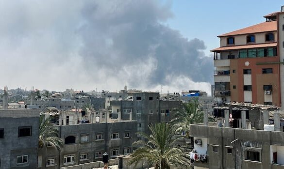 Des panaches de fumée s’élèvent d’une douzaine d’endroits différents, des bâtiments sont en ruines et de nombreux les immeubles d’habitation portent d’énormes…