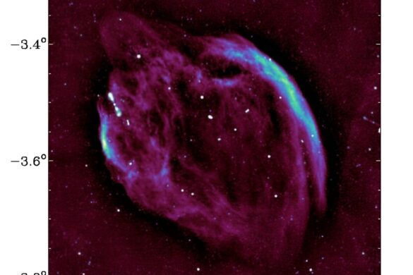 Image MeerKAT de puissance totale de l’un des SNR étudiés, désigné G4.2−3.5, à 1 335 MHz en coordonnées galactiques. Crédit: arXiv (2023). DOI :…