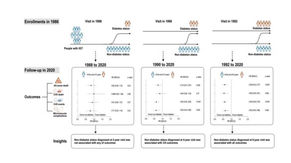Qian X, Wang J, Gong Q, An Y, Feng X, He S, et al. Statut non diabétique après diagnostic d’intolérance au glucose et risque de décès à long terme et de complications vasculaires : une analyse post hoc de l’étude Da Qing Diabetes Prevention Outcome Study, Médecine PLoS (2024). DOI: 10.1371/journal.pmed.1004419