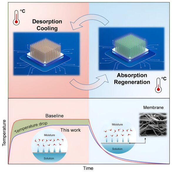 Wu, dans son article intitulé “Refroidissement passif encapsulé par membrane et déssorbant l’humidité pour une gestion thermique électronique de haute performance, à très faible coût et de longue durée”, a déclaré que l’appareil “peut récupérer spontanément et rapidement sa capacité de refroidissement en absorbant vapeur d’eau de l’air pendant les heures creuses. Il a comparé ce processus à la nature, où les mammifères régulent la température corporelle en transpirant et en se réhydratant.