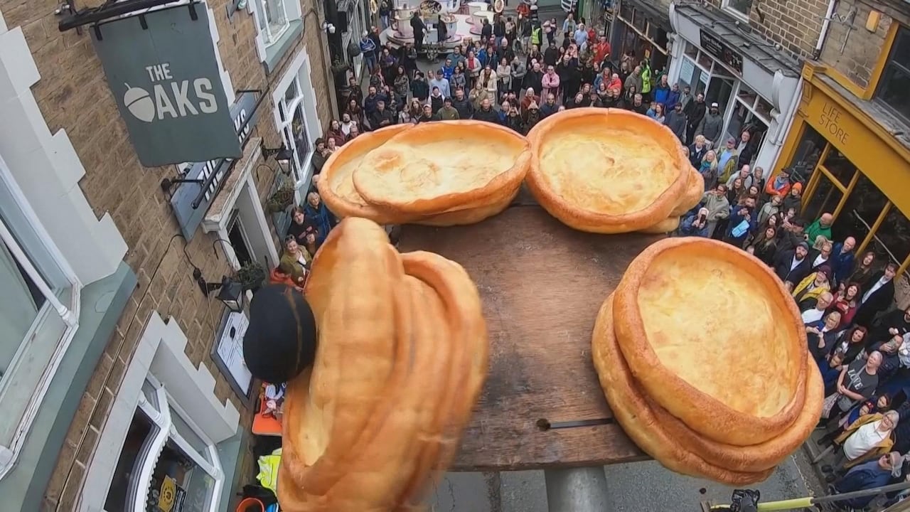 VIDÉO1: 12VideoBlack Pudding Lobbers visent dans la tradition annuelle de l’anglais il y a 3 heures